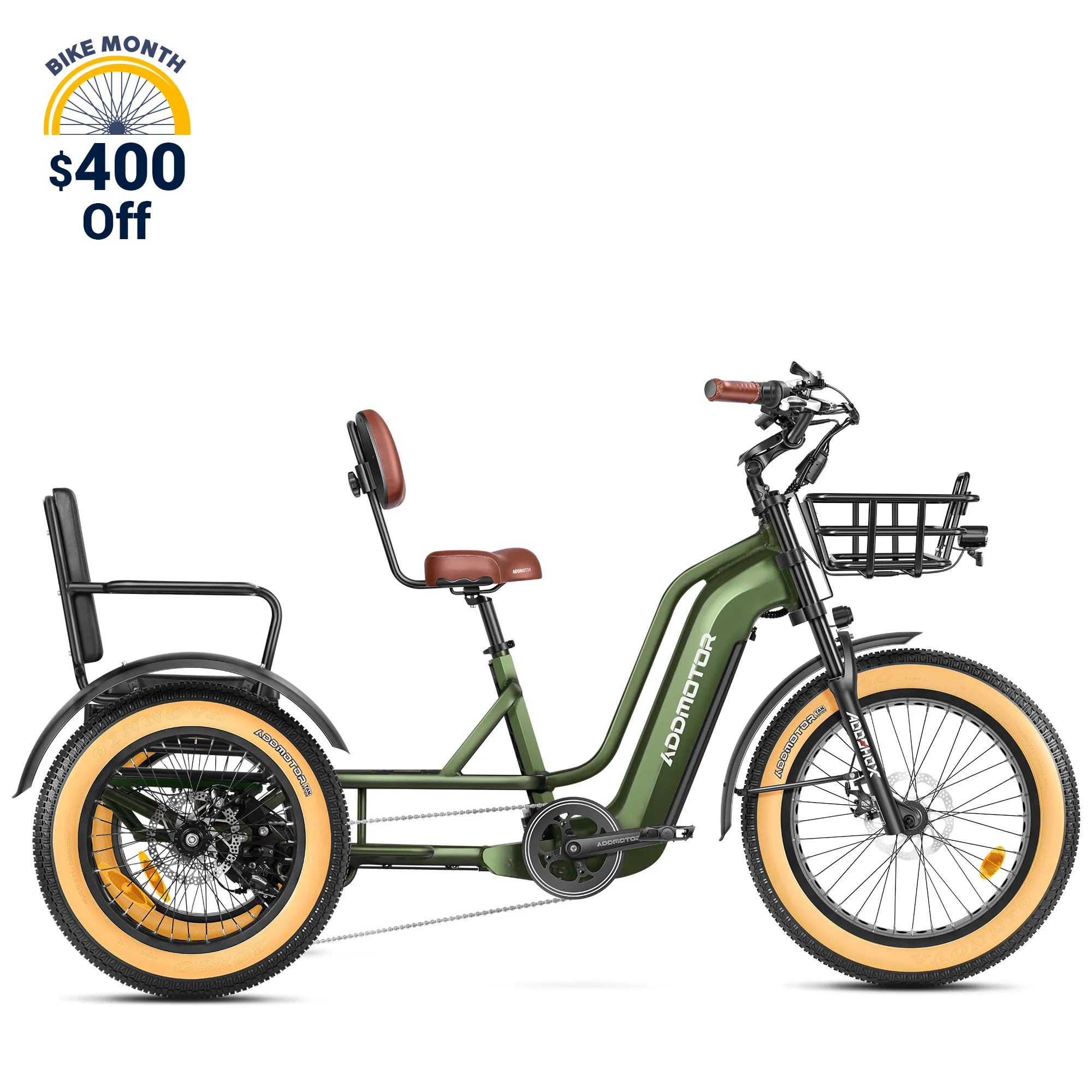 This electric trike is everything you've come to expect. The parking brakes make it safer. Plus Addmotor latest EB 2.0 electrical system, the M-366X is ready for your leisurely riding.
